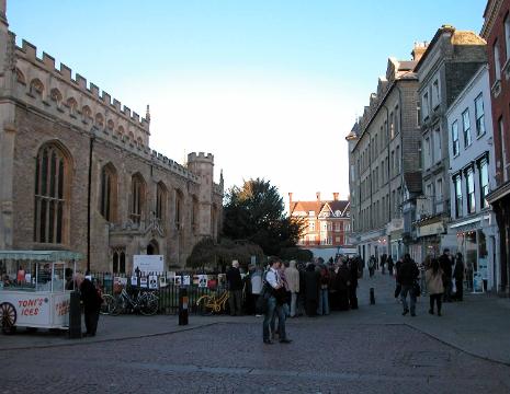 University Church of Great St. Mary's. Straight through leads into the market square - the three chimneys at