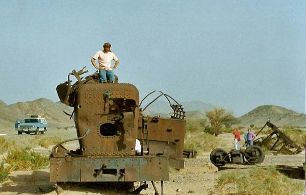 stripped the rails to use as boundary markers, etc.; the train itself is till lying there in the desert.